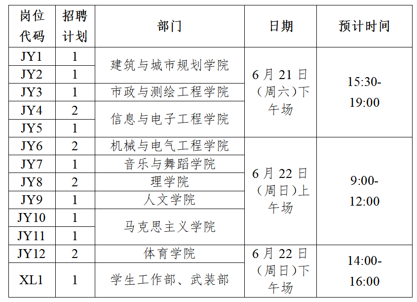 6月21日(周六)上午场 9:00-12:30,每位考生6分钟;