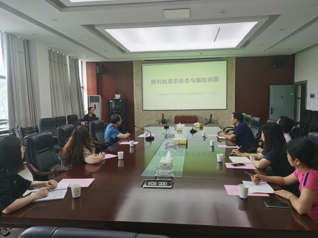 为提高编校质量,给学术期刊中心员工提供学习交流机会,2020年6月30日下午3:00,yl6809永利集团官网学术期刊中心邀请中央宣传部出版产品质量监督检测中心湖南分中心、湖南省新闻出版局检测中心编校部部长,湖南省书报刊编校质量检测认定专家委员会专家文静然来校为编辑部员工进行“期刊的意识形态与编校问题”为题的讲座。讲座由何振副校长主持,学术期刊中心全体员工参会。