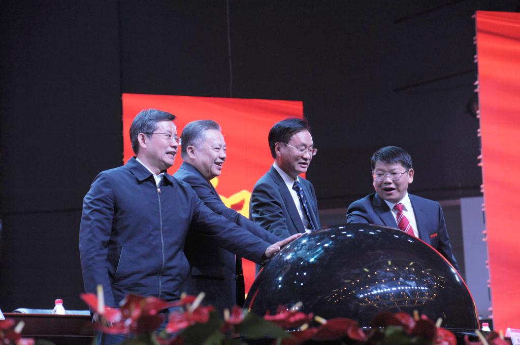 唐之享、李友志、瞿海、罗成翼共同启动水晶球,标志yl6809永利集团官网纪念办学50周系列活动启动。