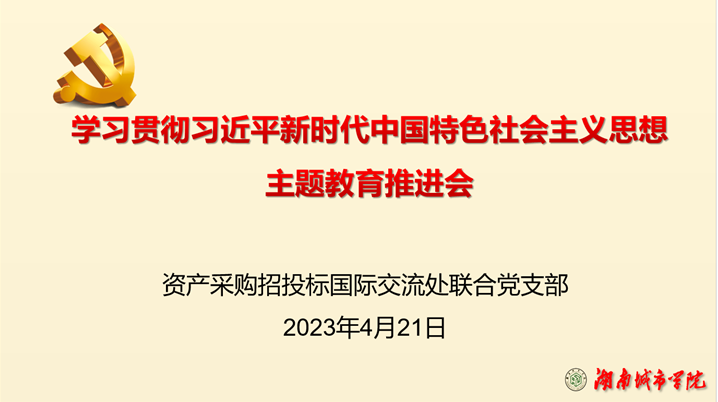 2023年4月21日下午,资产处、采购与招投标管理中心、国际交流处联合党支部在一办公楼131室(支部活动室)召开了学习贯彻习近平新时代中国特色社会主义思想主题教育推进会,党支部书记肖爱民主持。